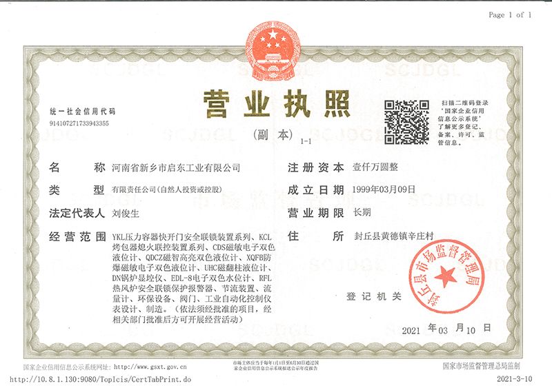 河南省新鄉(xiāng)市啟東工業(yè)有限公司始建于1987年,是專注研發(fā)、生產(chǎn)自動(dòng)化儀器儀表(主要與壓力容器、鍋爐等容器配套使用)的廠家。主要產(chǎn)品有液位計(jì)(磁敏雙色型、磁翻柱型等)系列、烤包器熄火聯(lián)控裝置系列、壓力容器快開門安全聯(lián)鎖保護(hù)裝置系列、鍋爐報(bào)警器系列。二十多年來(lái),公司產(chǎn)品暢銷國(guó)內(nèi)并遠(yuǎn)銷俄羅斯、蒙古與東南亞,深得廣大用戶的信賴和好評(píng)。我們多年來(lái)致力于自動(dòng)化儀器儀表的研制生產(chǎn),公司現(xiàn)具有完善的生產(chǎn)、試驗(yàn)、檢測(cè)手段和設(shè)備。科技創(chuàng)新、誠(chéng)信服務(wù),是我們不變的經(jīng)營(yíng)理念,我們將以強(qiáng)有力的技術(shù)支持及售后竭誠(chéng)為客戶提供良好的服務(wù)。  2012年我公司成功研發(fā)了KCL系列烤包器熄火聯(lián)控裝置,并于2013年2月2日榮獲中華人民共和國(guó)國(guó)家知識(shí)產(chǎn)權(quán)局辦法的《實(shí)用新型**證書》<**號(hào):2021202257735>該產(chǎn)品廣泛應(yīng)用于唐鋼等大型鋼鐵企業(yè),為烤包器安全作業(yè)提供了有力的保障。  2002年我公司成功研發(fā)磁敏電子雙色液位計(jì)獨(dú)特的高亮度LED紅綠雙色顯示,獲得了專家的首肯和用戶的一致好評(píng)。在此基礎(chǔ)上我公司研發(fā)人員十年磨一劍,致力于XQFB-1防爆型磁敏雙色液位計(jì)的研發(fā),于2013年12月27日由國(guó)家防爆電器產(chǎn)品質(zhì)量監(jiān)督檢驗(yàn)中心檢驗(yàn)合格并頒發(fā)防爆合格證書<編號(hào):cnex19.0883>。該產(chǎn)品性能得到了充分的發(fā)揮,廣泛應(yīng)用于含有Ⅱ類A·B級(jí)T1-T4組可燃?xì)怏w或蒸汽與空氣混合形成的爆炸性混合物的0區(qū)、1區(qū)危險(xiǎn)場(chǎng)所。連接用戶DCS或PLC系統(tǒng)實(shí)現(xiàn)遠(yuǎn)距離集中顯示和控制,從而實(shí)現(xiàn)節(jié)能、數(shù)字化管理。為用戶增加了一定的經(jīng)濟(jì)效益和社會(huì)效益,。2014年公司成功申請(qǐng)了夢(mèng)潤(rùn)儀表的logo,新的品牌新的形象,夢(mèng)潤(rùn)儀表是啟東的LOGO, 歡迎新老用戶前來(lái)洽談合作。  我們一如既往地注重科研的投入,憑借產(chǎn)品的不斷更新、加大科技含量,進(jìn)一步拓展市場(chǎng)。我們相信品質(zhì)成就未來(lái),以過(guò)硬質(zhì)量、優(yōu)惠價(jià)格、完善的售后服務(wù)熱忱歡迎廣大客戶來(lái)我司視察指導(dǎo)、洽談業(yè)務(wù);精誠(chéng)合作,共創(chuàng)輝煌!
